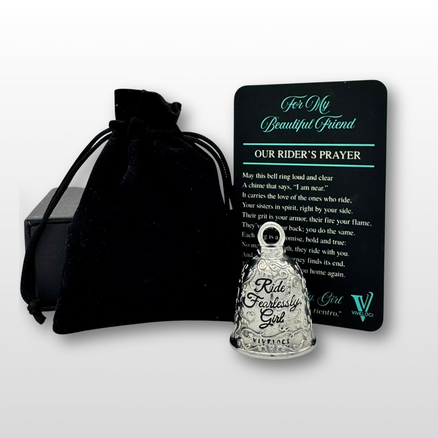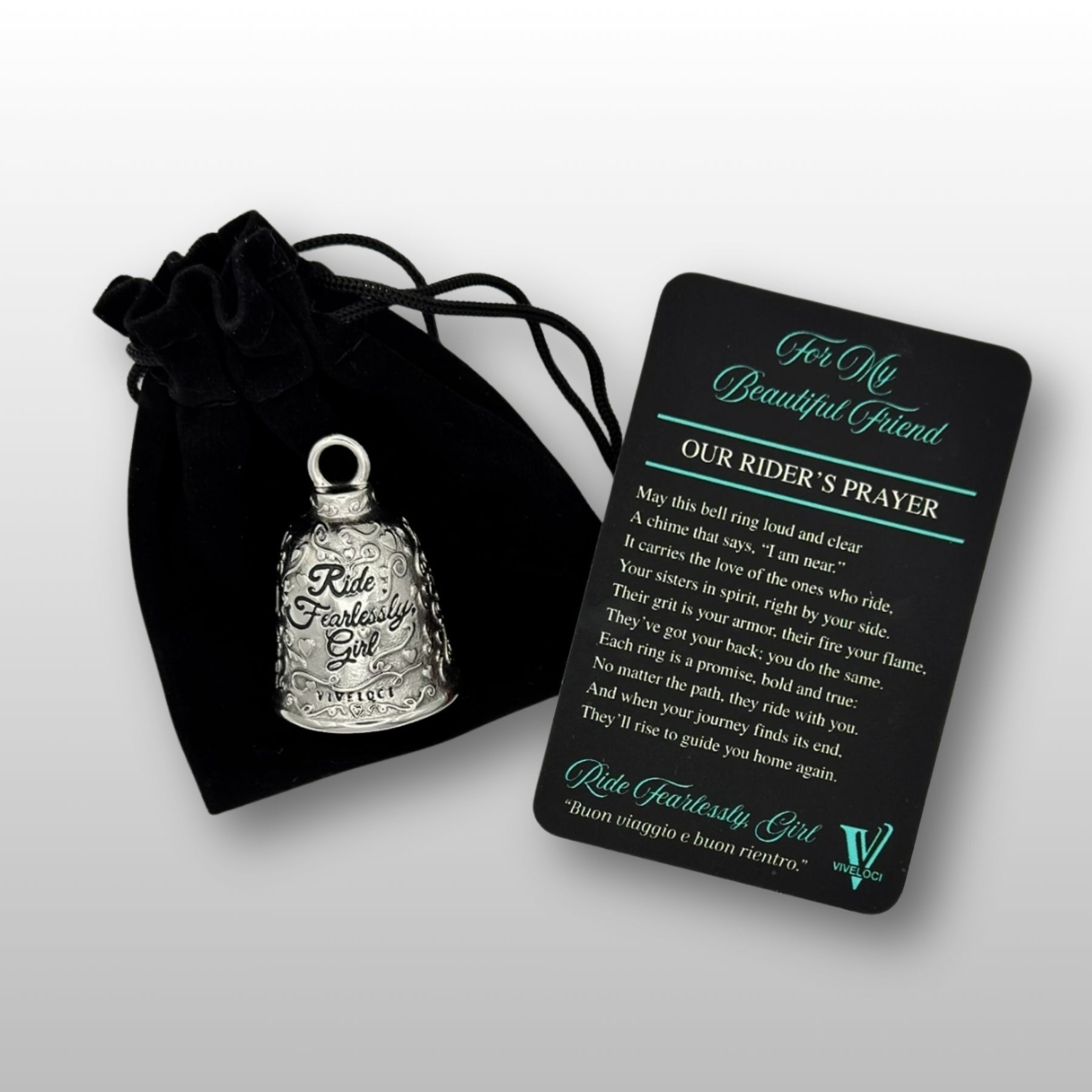 The ViVeloci Bell is more than a charm — it’s a symbol of connection, protection, and the unspoken bond between women who ride. Each bell comes with a wallet-sized keepsake card featuring our rider’s blessing, along with a gift box ready for giving.